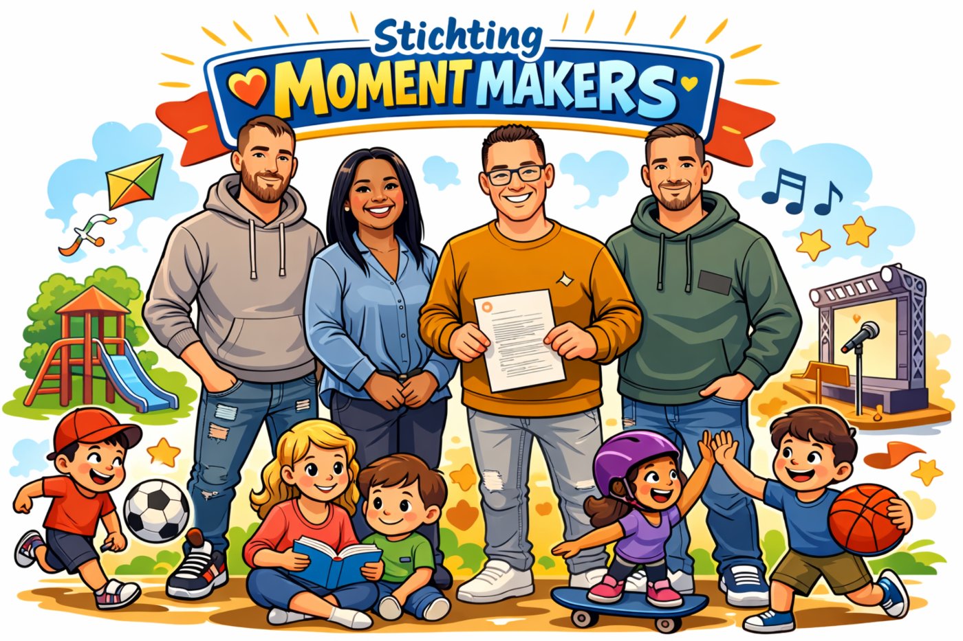 Samen bundelen we onze krachten, ideeën en energie om onverwachte momenten te creëren. Elk van ons brengt een unieke expertise en perspectief mee, wat ons in staat stelt om onze missie met passie en plezier waar te maken. Samen staan we sterk en bouwen we aan een stichting die echt het verschil maakt! Wij ontvangen geen vergoeding! Wij zetten ons allemaal belangeloos in voor Stichting Moment Makers